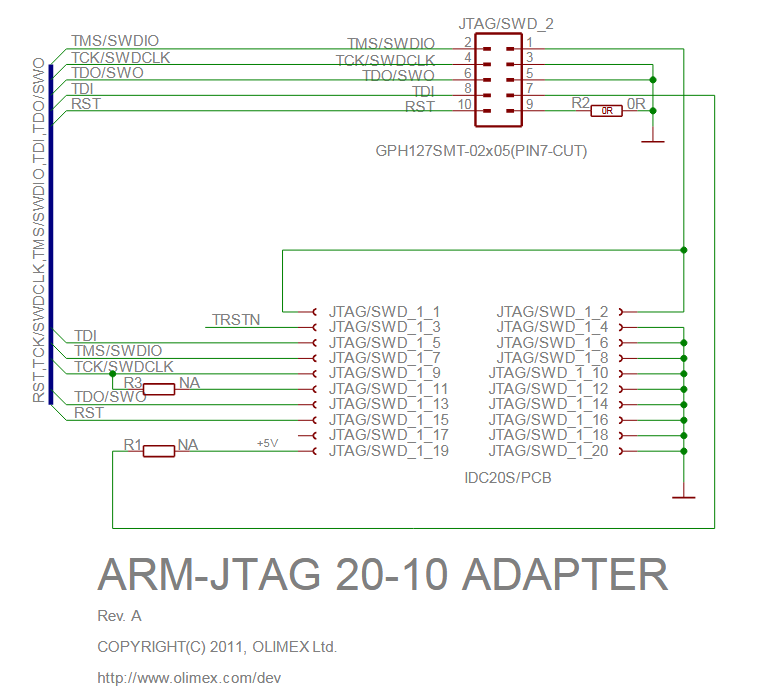 ・Plug-in adapter for ARM-USB-OCD, ARM-USB-OCD-H, ARM-USB-TINY, ARM-USB-TINY-H which allow ARM processors which support SWD (like LPC1343) to be programmed/debugged