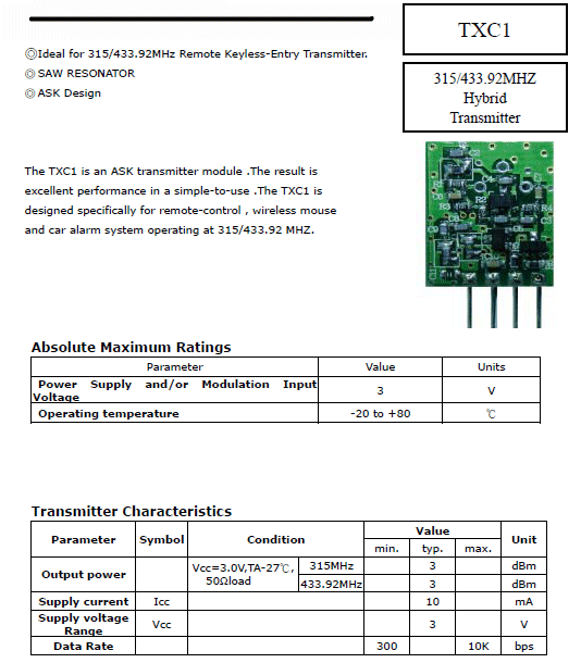 組み込み用のよくある微弱無線の送信モジュールです。