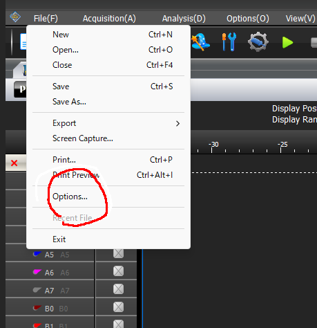optionsを選択
