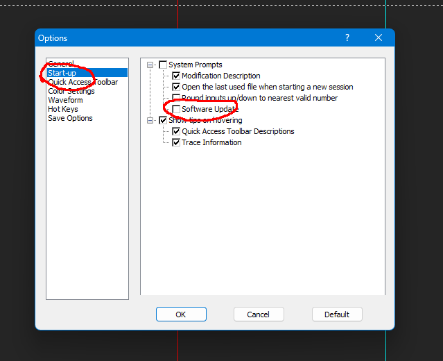 左のStart-upを選ぶ、右側のSoftware Updateのチェックを外します。写真ではチェックを外した状態です。